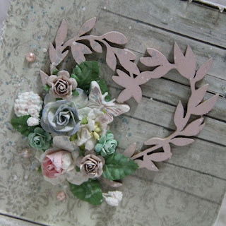 Pro základ přání jsem využila krásné papíry La Blanche, které u nás můžete zakoupit u Lena-art, jsou to nádherné kvalitní papíry, které se hodí nejen pro romantické tvoření. Všechny hlavní ozdoby jsou nabarvené akrylovými barvami. Všechny ozdoby jsou lepené 3D matte gelem od Finnabair. Některé z kytiček jsou kupované, jiné ty níže využité u přání s klecí, jsem vytvořila pomocí výsekové šablony, akvarelového papíru a olejových pastelů Prima Marketing.